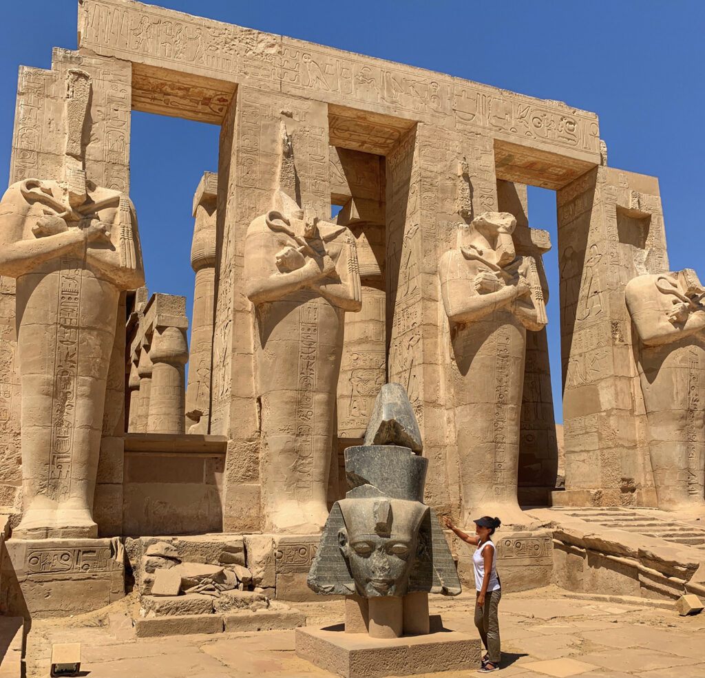 Templo de Ramesseum: ubicado en orilla Occidental del Río Nilo, frente a la ciudad de Luxor. Llamado también el Templo de “Millones de años” del faraón Ramsés II, actualmente sobrevive solo una pequeña fracción de su estructura y la mayor parte se encuentra en ruinas, sin embargo, revela que era una estructura majestuosa y de gran escala, una de las más ambiciosas de aquellos tiempos.