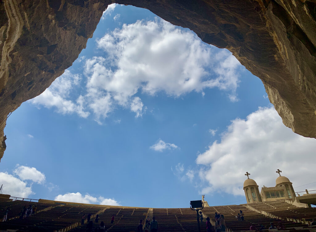 A continuación, me dirigí a visitar uno de los maravillosos edificios Coptos del Cairo, el Monasterio de San Simón el Curtidor o «Iglesia de la Cueva», situado en la zona de las colinas de El Mokattam, cerca de la barriada de Zabbaleen o Ciudad de la Basura, el mayor asentamiento informal de recolectores de basura del Cairo, donde el reciclaje de residuos es fundamental para la economía de su población.