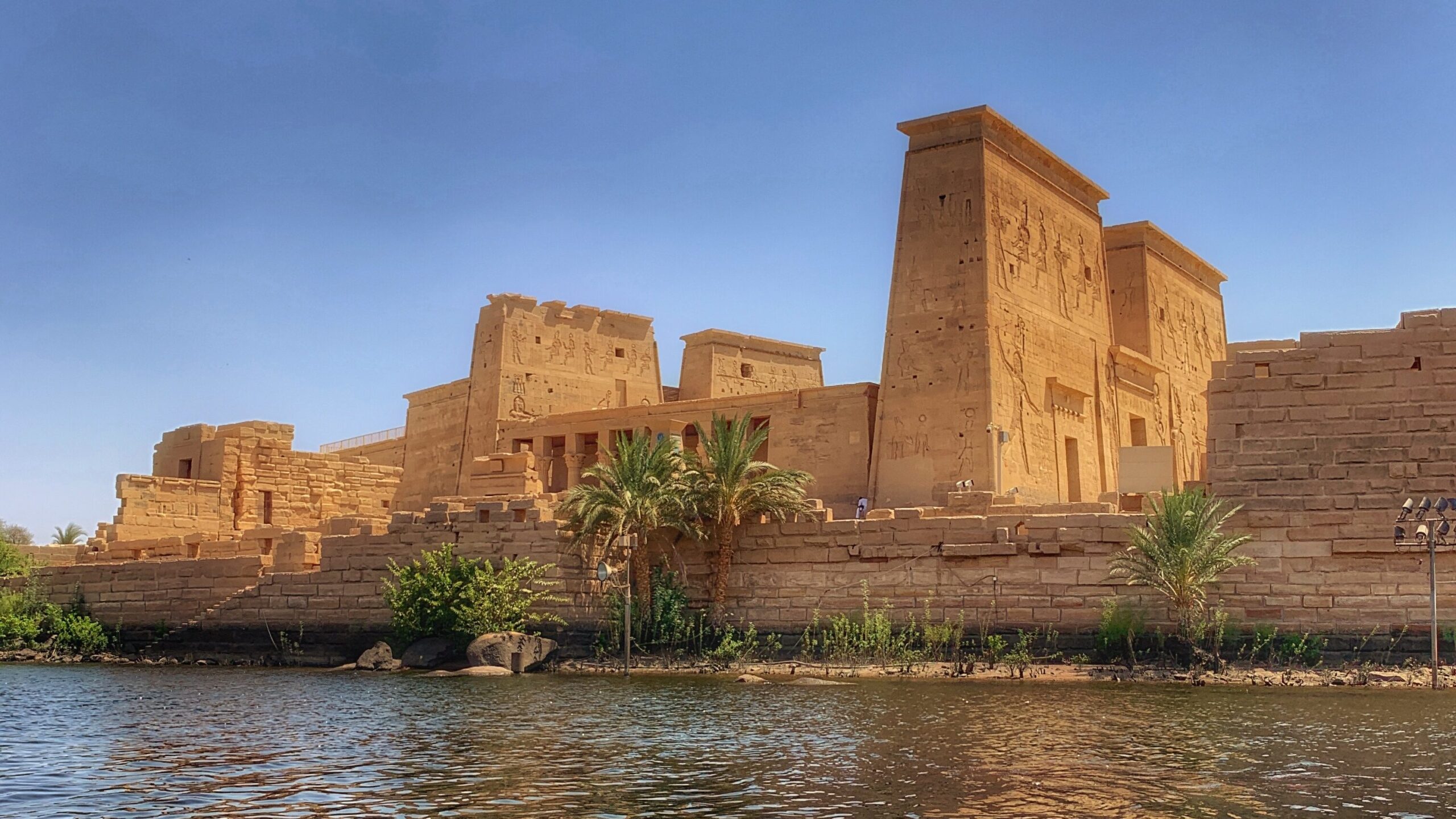 Templo de Philae: “La Perla del Nilo”, que fue construido en honor de la Diosa Isis, la deidad principal de la isla. Uno de los templos más bellos y mejor conservados de Egipto, ubicado en la Isla de Agilkia, a 10 km al Sur de Aswan. Fue uno de los templos reubicados durante la construcción de la presa, al que solo se puede acceder en barca o bote.