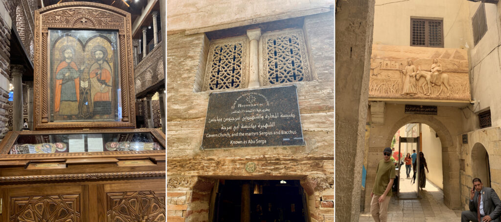 Cairo Copto: Donde pude visitar la «Iglesia de San Sergio y Baco», que se cree que fue construida en el lugar donde la Sagrada Familia (La Virgen María, San José y el Niño Jesús) descansó al final de su viaje a Egipto conocido como la «Huida a Egipto», de modo que muchos son los fieles y visitantes que acuden al templo para conocer en persona este rincón tan importante para el cristianismo.