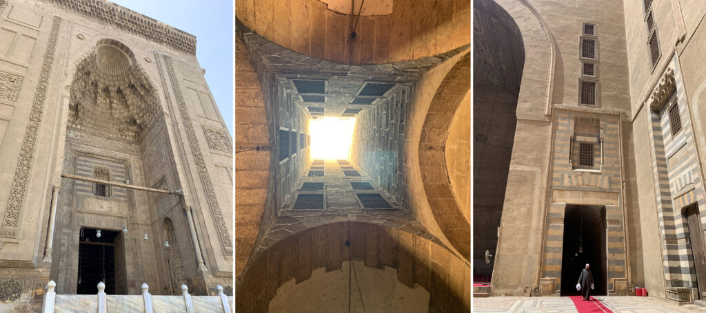 La Mezquita Madrasa del Sultán Hassan: Una imponente mezquita y madrasa de la época del Sultanato Mameluco de Egipto ubicada en el centro histórico de El Cairo. Es una de las mezquitas más grandes del mundo pues sus medidas son monumentales. Y es uno de los templos musulmanes más bellos de Egipto, otra joya del arte islámico.