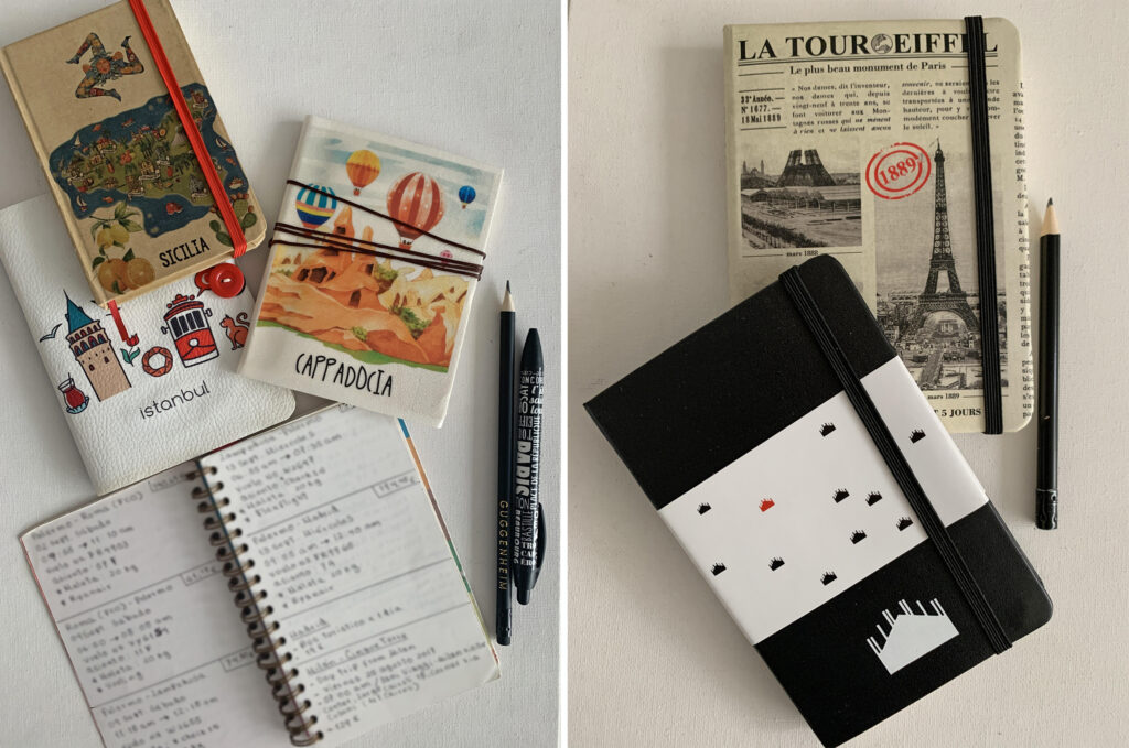 En ese momento, mi teléfono pasa a ser simplemente un instrumento para tomar alguna fotografía y video. Y lo que reemplaza al teléfono durante mis recorridos, es una bitácora viajera, un cuaderno, libreta o bloc que llevo siempre conmigo para ir tomando nota, registrando todo lo que sucede o que considero relevante a lo largo de mi viaje y también un sketchbook en el que puedo plasmar con dibujos algunos momentos, imágenes o detalles que no alcanzo a plasmar con las palabras, solo a través del dibujo.