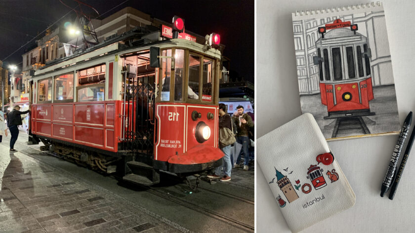 En ese momento, mi teléfono pasa a ser simplemente un instrumento para tomar alguna fotografía y video. Y lo que reemplaza al teléfono durante mis recorridos, es una bitácora viajera, un cuaderno, libreta o bloc que llevo siempre conmigo para ir tomando nota, registrando todo lo que sucede o que considero relevante a lo largo de mi viaje y también un sketchbook en el que puedo plasmar con dibujos algunos momentos, imágenes o detalles que no alcanzo a plasmar con las palabras, solo a través del dibujo.