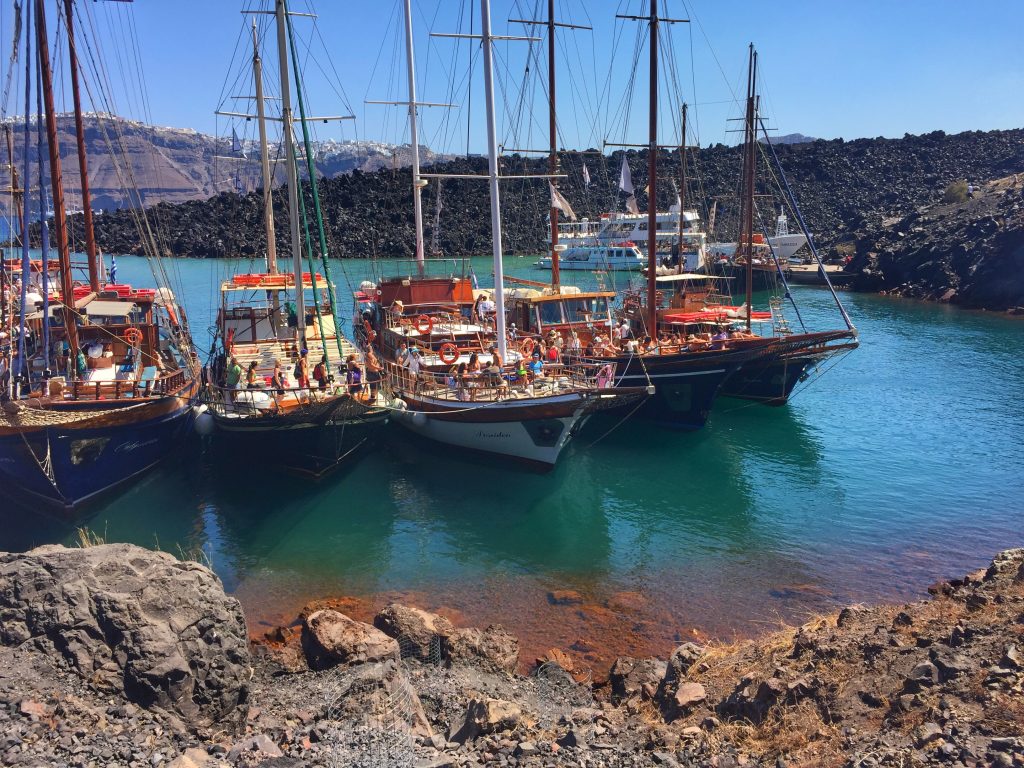 Luego nos dirigimos a la isla Palea Kameni para sumergirme en las aguas termales y hacer los famosos “baños de barro color rojizo”, que se formaron como resultado de las erupciones volcánicas. Regresando finalmente al puerto de Gialos en Santorini después de haber vivido una extraordinaria experiencia.