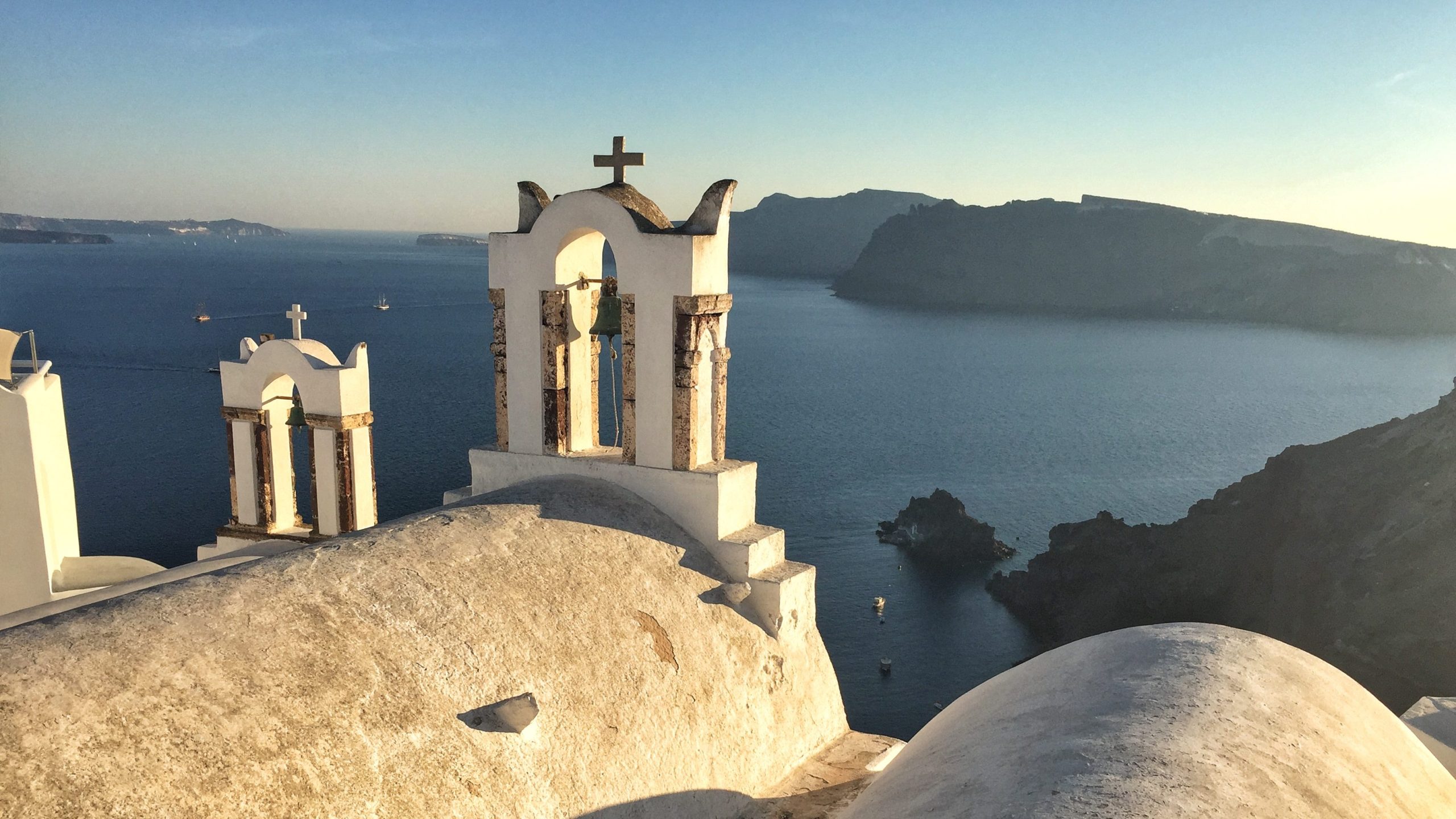 Es una maravilla de la naturaleza volcánica, destacando en ella sus preciosos pueblos, asomados a los acantilados, de fachadas blancas con puertas y ventanas de un azul vibrante. Repleta de cúpulas de iglesias y rústica arquitectura en blanco y azul, una de las características que la convierten en un destino único.