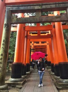 Kioto! Donde enloquecí con su arte innovador y artesanía tradicional!… Una ciudad legendaria donde te sumerges en el Japón más auténtico. Famosa por sus templos Budistas clásicos y sus jardines Zen, donde reina la Paz y la tranquilidad por naturaleza, palacios imperiales, santuarios Shinto y casas de madera tradicionales. Situada a una distancia de 2 hrs 45 min de la ciudad de Tokio si tomas el Shinkansen (tren Bala). Es una de las ciudades japonesas más apreciadas por los viajeros, no solo por sus templos, parques y barrios con encanto, sino porque brinda la oportunidad de descubrir rincones modernos y tradicionales a cada paso que das. El santuario Fushii Inari Taisha es uno de esos lugares que sí o sí hay que visitar si vas por Kioto. Es un santuario con una de las imágenes más icónicas de Kioto y del turismo en Japón. Kioto es una ciudad que mantiene su esencia tradicional, donde puedes vivir experiencias auténticas japonesas, como por ejemplo, en uno de los barrios más famosos de Kioto, el barrio de Gion, repleto de callejuelas con un aspecto muy tradicional, en las que se esconden restaurantes y casas de Té, donde poder degustar comida típica japonesa e interactuar con la vida local, mientras puedes ver paseando a las Geishas (artistas femeninas) y las Maikos (aprendices de Geishas) con sus Kimonos y vestimenta típica japonesa.